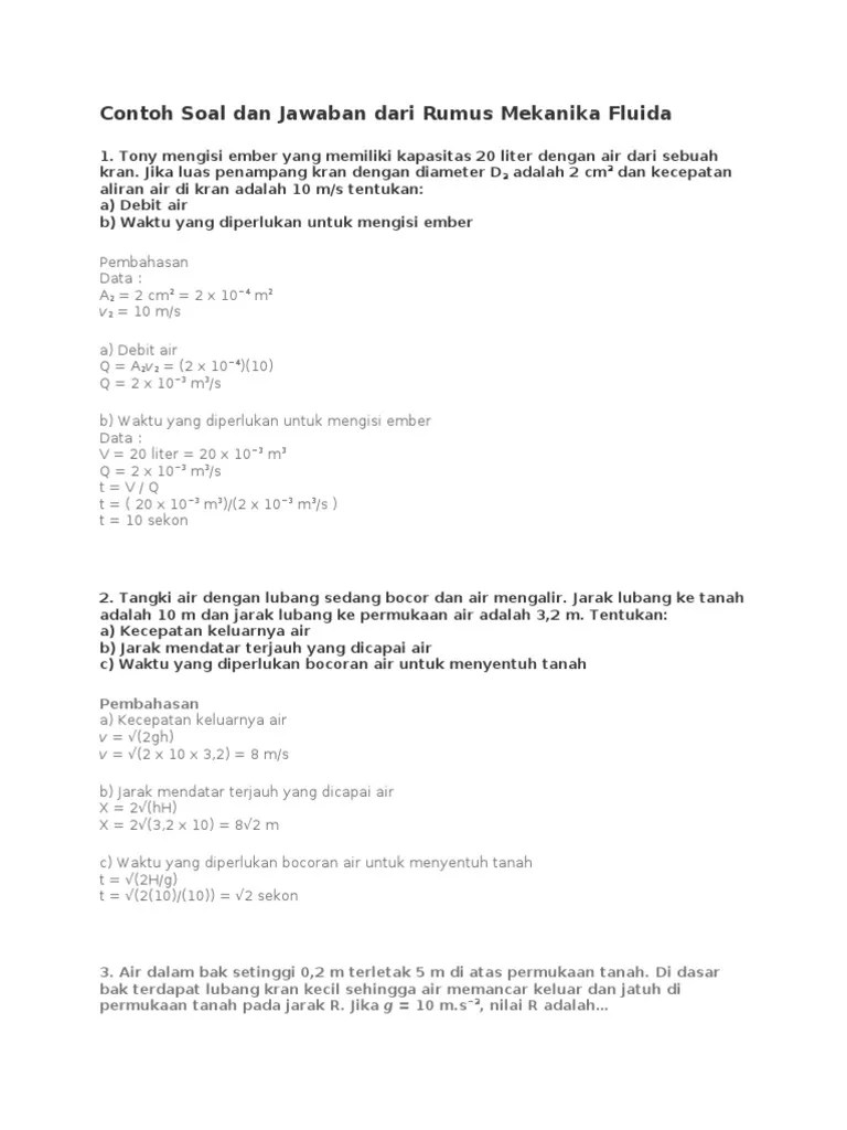 49+ Contoh Contoh Soal Mekanika Fluida. Contoh fungsi vektor, misalnya persamaan dari gerakan bebas suatu partikel dalam ruang. Advertisements jurusan teknik mesin terbaik yang ada di indonesia ini berupa daftar universitas terbaik pada bidang tersebut. Contoh soal ujian pembahasan perhitungan hukum archimedes volume benda di atas air. Teknik mesin merupakan salah satu … Isi bahan ajar ini dari bab 1 sampai bab 4, materi yang dibahas adalah: Jika benda tersebut dimasukkan ke dalam air yang massa jenisnya 1.000 kg/m3, tentukanlah volume benda yang berada di atas permukaan air. Daftar dibawah ini juga akan memberikan link langsung menuju website resmi universitas yang ada. Dimana daftar ini dapat anda gunakan sebagai referensi dalam memilih universitas yang cocok untuk anda. Secara kasar, untuk beberapa kilometer di … Jika kalor jenis air 4.186 j/kg o …